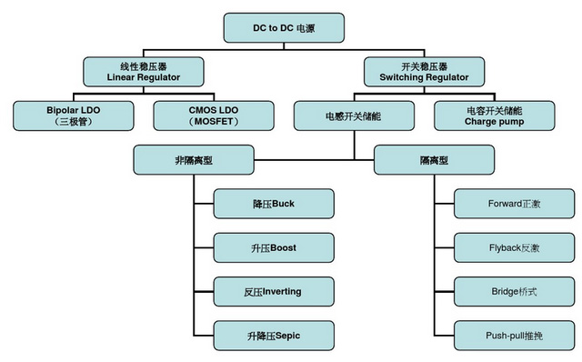 開關(guān)電源分為AC-DC電源模塊和DC-DC電源模塊倆個(gè)分支,其中DC-DC按功能可分為升壓轉(zhuǎn)換器、降壓轉(zhuǎn)換器、反向轉(zhuǎn)換器及升降壓轉(zhuǎn)換器。按電路理解的意思是可以將低壓轉(zhuǎn)成高壓輸出的電路、將高壓轉(zhuǎn)成低壓輸出的電路、將電壓極性改變的電路(負(fù)變正、正變負(fù))三種。