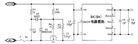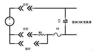 該方法缺陷是插入的速度不能控制,如插入速度過快,電容C1還沒充滿電時,短針就已經(jīng)接觸,沖擊電流的限制效果就不好。也可用熱敏電阻法來限制沖擊電流,但由于DC/DC電源的輸入電壓較低,輸入電流較大,在熱敏電阻上的功耗也較大,一般不用這種方法。
