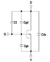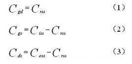 帶外接電容C2的N型MOS管極間電容等效電路MOS管的極間電容柵漏電容Cgd、柵源電容Cgs、漏源電容Cds可以由公式確定,公式中MOS管的反饋電容Crss,輸入電容Ciss和輸出電容Coss的數(shù)值在MOS管的產(chǎn)品技術手冊上可以查到。公式如下: