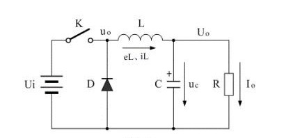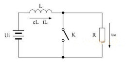 當(dāng)K接通時,輸入電源開始對L加電,當(dāng)K關(guān)斷時,反電動勢與電流方向相同,但是與開關(guān)關(guān)斷前的方向相反,控制開關(guān)倆端的輸出電源等于輸入電壓與反電動勢之和。