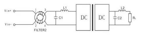 在實際應用中,電路會產(chǎn)生共模干擾,可以在模塊的輸入端采用共模扼流圈進行抑制。下面是DCDC電源模塊采用共模扼流圈的電路圖,如下圖所示: