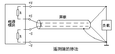 如上圖所示:目前多數(shù)低壓大電流輸出的電源模塊都有遙測(cè)端+S 和-S ,使電源內(nèi)部反饋控制電路通過檢測(cè)線和負(fù)載相連接,補(bǔ)償大電流線路壓降對(duì)負(fù)載效應(yīng)值的影響。圖中給出了遙測(cè)端和負(fù)載的連接方法,檢測(cè)線和輸出大電 流負(fù)載線分離,而遙測(cè)端直接檢測(cè)負(fù)載兩端電壓。這種方法是利用提高輸出端電壓來維持負(fù)載兩端的電壓值,其中遙測(cè)端與負(fù)載的連線應(yīng)盡可能屏蔽,避免電磁干擾影響電源內(nèi)部的反饋控制電路。一般在遙測(cè)端與電源輸出端之間有一只電阻,假如遙測(cè)端由于粗心沒有連接到負(fù)載端上,可防止輸出端電壓上升過高。當(dāng)遙測(cè)端不用,應(yīng)分別和電源正負(fù)端短接。