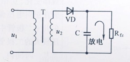 當(dāng)變壓器副邊電壓U2由零向正方向增加時,VD受正向電壓導(dǎo)通,電流分一路流經(jīng)負載,另一路對電容C充電。假如忽略二極管的正向壓降,電容兩端的充電電壓Uc等于U2,當(dāng)U2由最大值下降時,就會出現(xiàn)U2