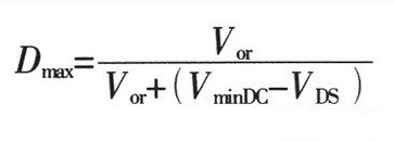 1、MOSFET開關(guān)管工作的最大占空比Dmax如上式:Vor為副邊折射到原邊的反射電壓,當(dāng)輸入為AC220V時(shí)反射電壓為135V,VminDC為整流后的最低直流電壓,VDS為MOSFET功率管導(dǎo)通時(shí)D與S極間電壓,一般取10V。