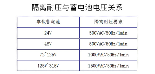 車載電子設(shè)備的介電試驗(耐壓試驗)的試驗電壓與車載蓄電池的供電電壓相關(guān),對于車載電子設(shè)備的供電類型不確定的話,如110V蓄電池可能浮沖至125V以上情況出現(xiàn),或低壓變壓器可能會產(chǎn)生大于125V電壓,建議采用1500VAC隔離的使用要求,可滿足瞬時過電壓時的電氣隔離要求。其相關(guān)要求如下: