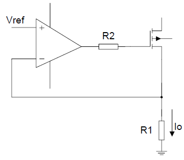 電路4:使用運放組成的恒流源,Io=Vref/R1。
