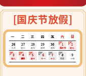 根據(jù)《國務院辦公廳關于2022年部分節(jié)假日安排的通知》,結(jié)合本公司的實際情況,現(xiàn)將2022年國慶節(jié)放假安排通知如下: 放假時間: 2022年10月1日至5日放假調(diào)休,共5天。 10月6日至8日正常上班。 10月9日休息。 請相關客戶與合作商提前做好準備,節(jié)假日期間我司會暫停生產(chǎn)和向外發(fā)貨服務。如客戶有特殊需求,請和我司相關業(yè)務人員聯(lián)系。如有造成不便,請諒解!謝謝!  …